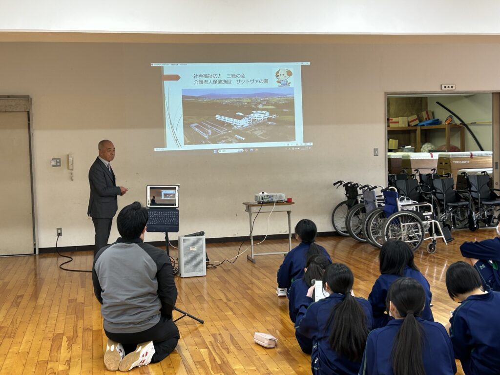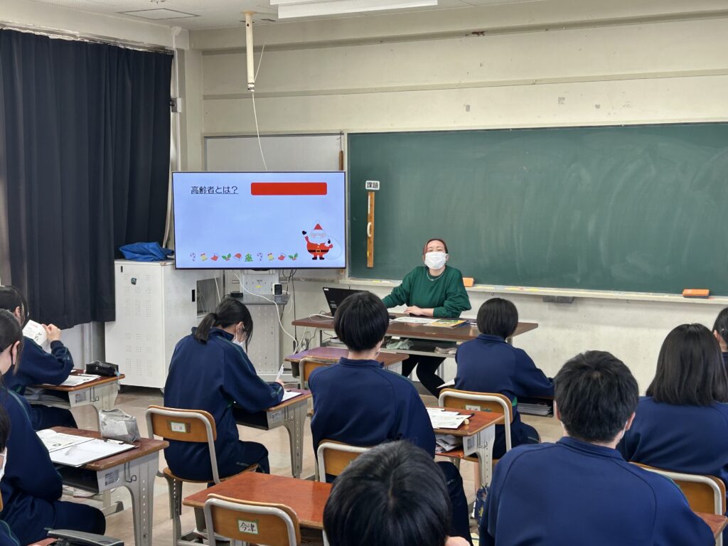 令和7年12月11日(木)、西中学校にて総合的な学習の時間を活用した福祉学習が行われました。西中学校は今年度ここまで、①福祉について(大垣市と校区の状況)、②高齢者福祉、障がい者福祉について、学んできました。今回は講義で学んだことを実際に体験してみようということで、3つの体験を行いました。