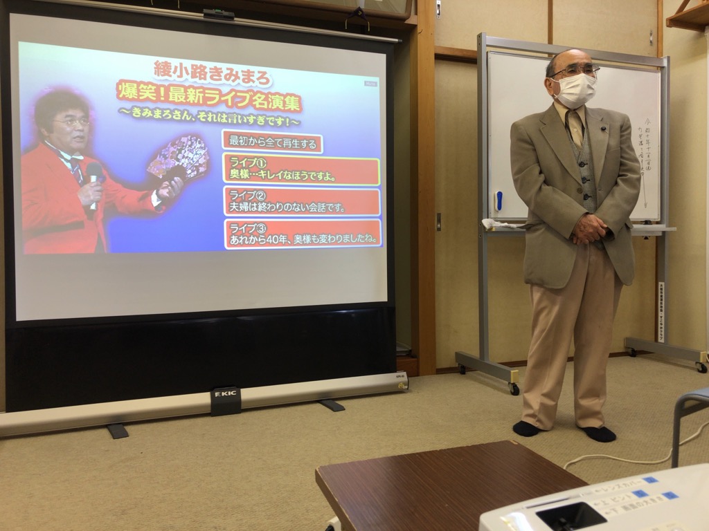サロンは、25名ほどの参加者がみられ、綾小路きみまろさんのDVD鑑賞で会場は、笑いに包まれていました。